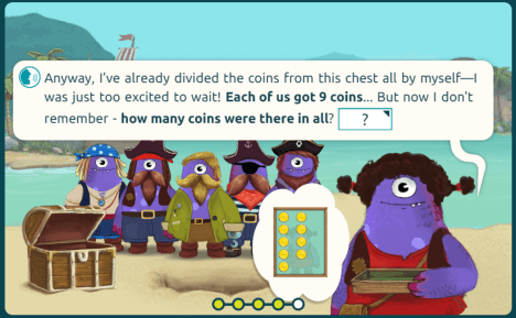 בסיפור ההרפתקה המלהיב והמרגש הזה, מספר הפיראטים ומספרם הכולל של המטבעות משתנים, דבר העוזר לתלמידים לפתח תובנה מספרית. תלמידים מגלים שיותר פיראטים פירושם פחות מטבעות שיחולקו לכל פיראט, יותר מטבעות שווה נתח גדול יותר.